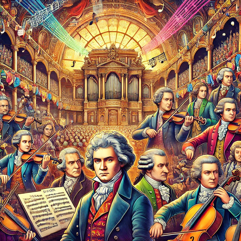- دوره کلاسیک (1750-1820): موسیقی این دوره بهدلیل وضوح و نظم ساختاری خود شناخته میشود. آثار موتزارت و هایدن از نمادهای این دوره به شمار میآیند.
